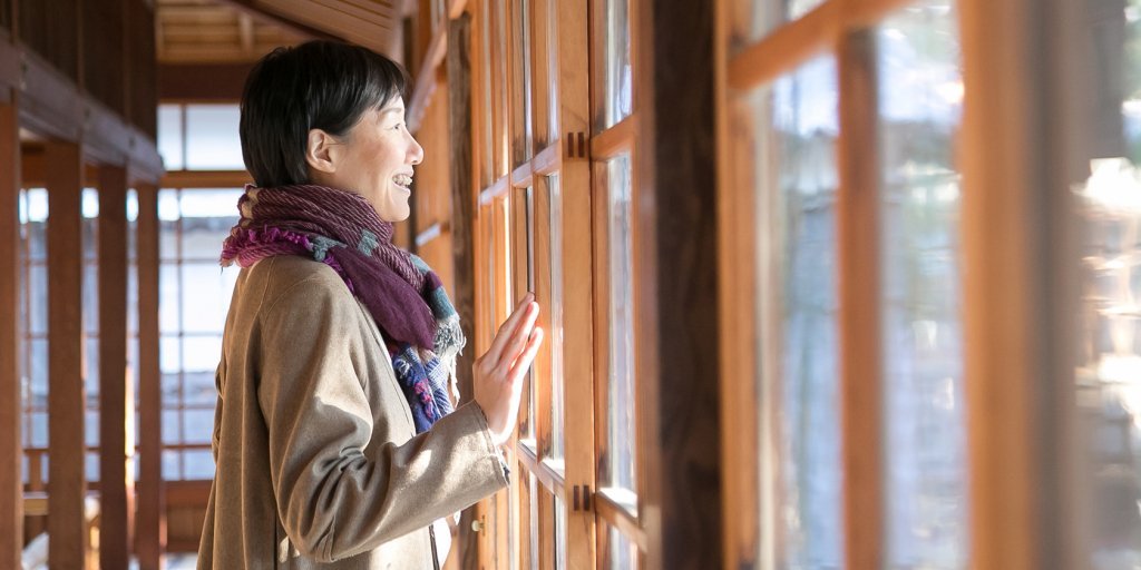 西附属邸には職人さんが作る波打つガラスに、広く明るい縁側。細かな気配りがされている建物の作り。